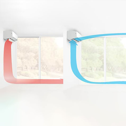 屋外から新鮮な空気を取り込み、エアコンの熱交換器で適温に整えて室内にお届け。