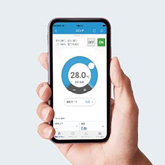 専用のアプリにより、お使いのスマートフォンやタブレットPCがエアコンのリモコンに早変わり。家の中でも外出先でも自在操作。
