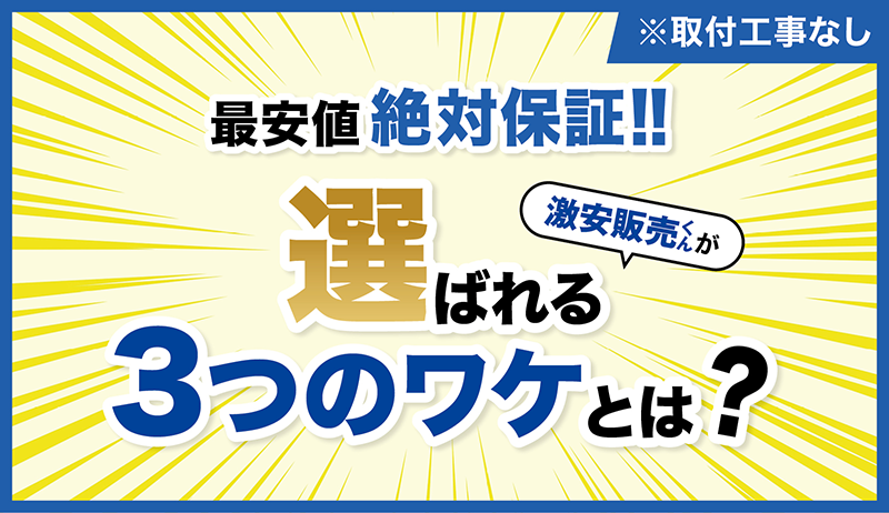 「大量買いすると安くなる」のはスーパーだけじゃないんです!激安くんはメーカーから一気にドカンと大量購入。その分、価格をグーンと抑えて、そのお得をそのままお客様に還元!これが激安のヒミツです。